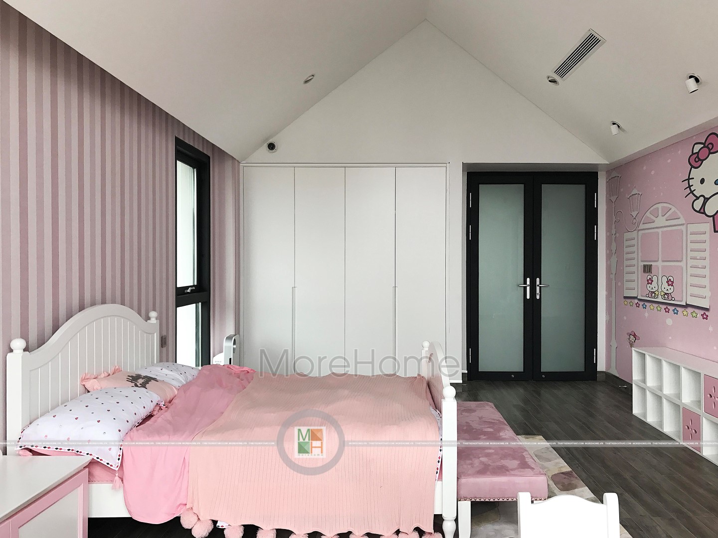 Thi công nội thất phòng ngủ cho bé gái với tông màu hồng và trắng làm chủ dạo, khu ực cho bé vui chơi, sáng tạo và học tập được thiết kế độc đáo, kích thích bé niềm sáng tạo.