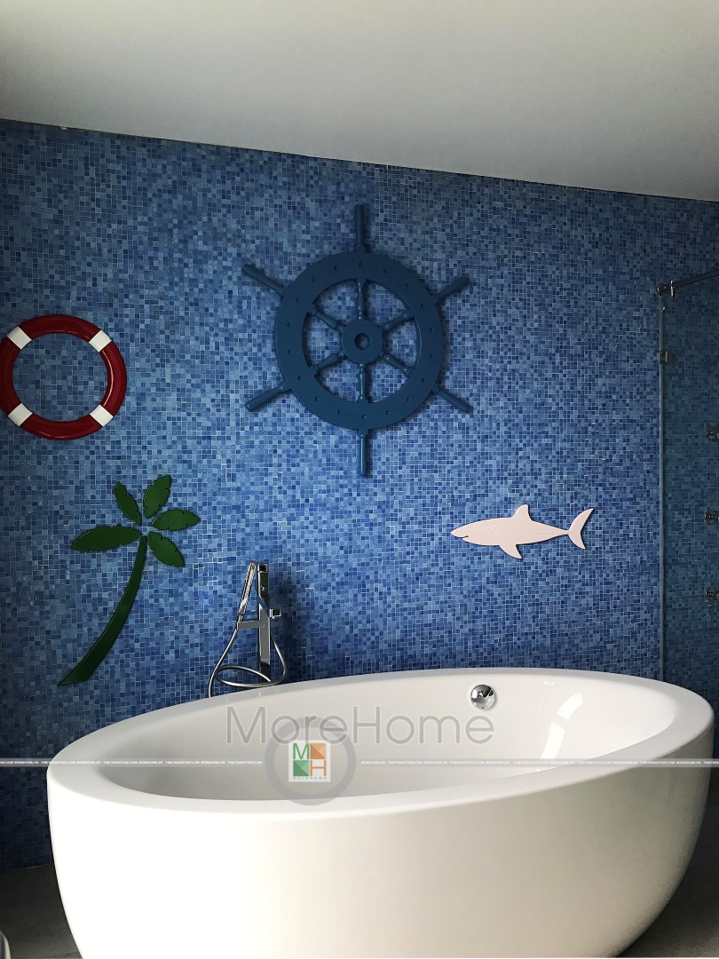 Phòng tắm cho bé cũng mang màu sắc và trang trí theo sở thích của bé