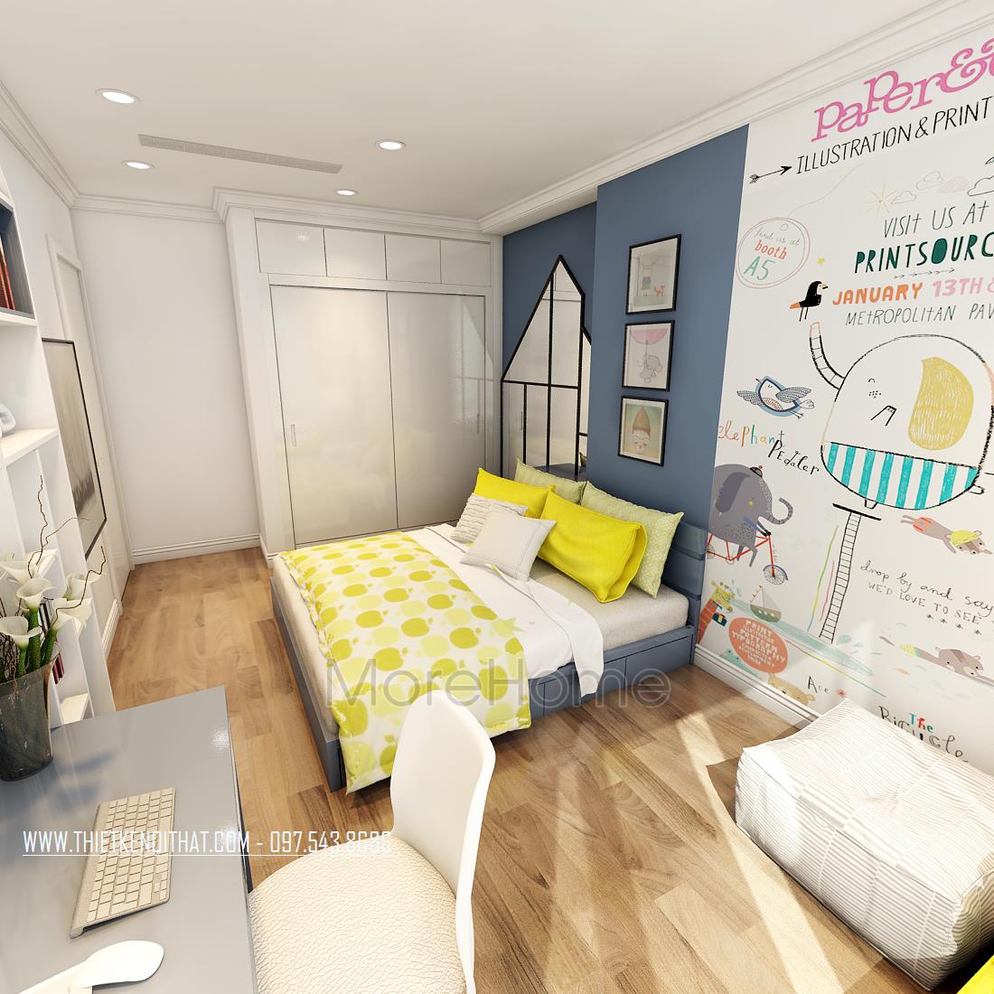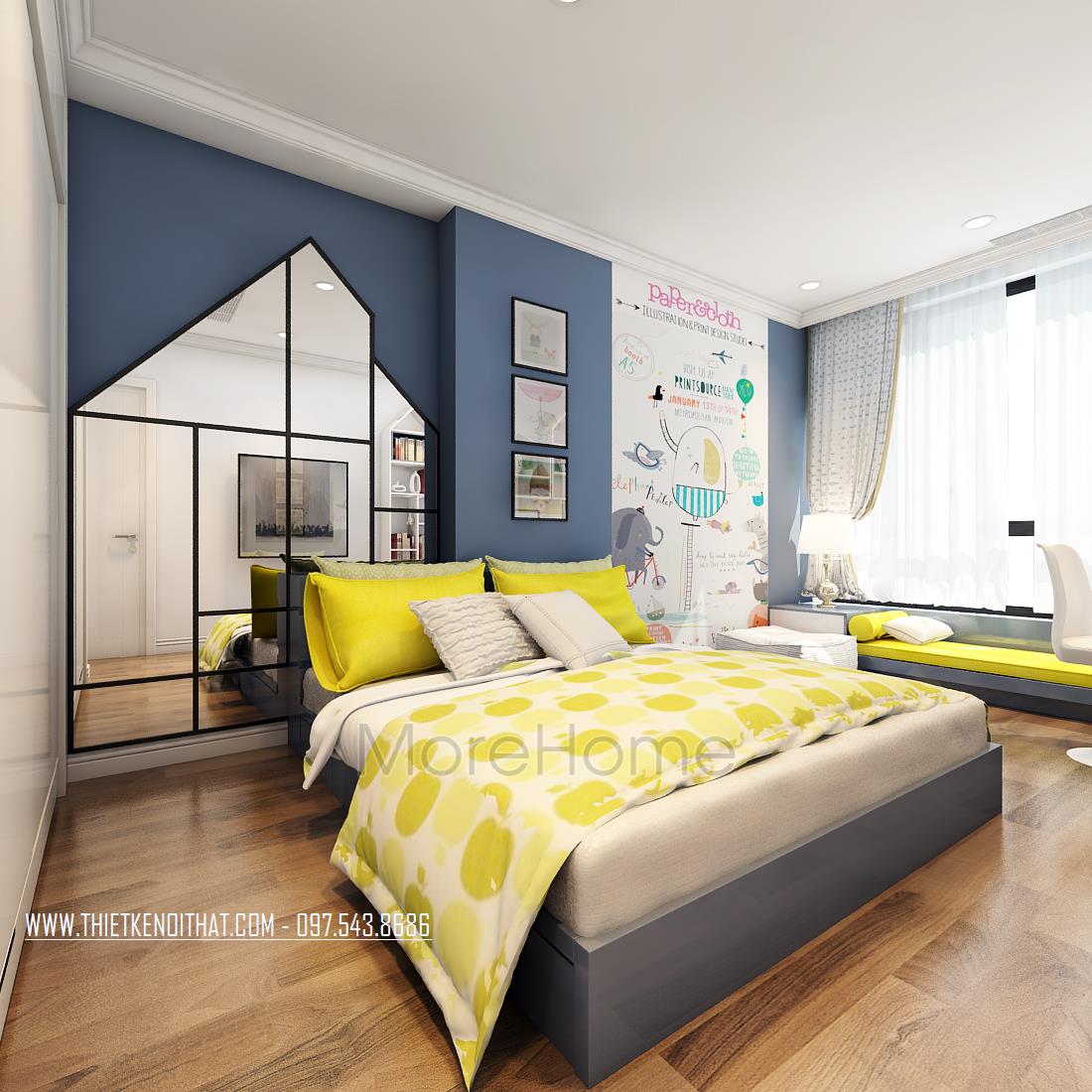 Thiết kế nội thất phòng ngủ đặc biệt chú trọng đến tính cá nhân, nổi bật nhất chính là việc dùng màu sắc trong từng không gian. Các căn phòng khác nhau sử dụng các tone màu khác nhau dựa vào sở thích và mong muốn của mỗi thành viên, gợi mở một không gian riêng tư thân thiết. Bên cạnh đó, các thiết kế kệ, tủ quần áo kết hợp giúp tiết kiệm không gian đa năng khá nhiều, tránh cảm giác bí bách trong không gian hẹp.