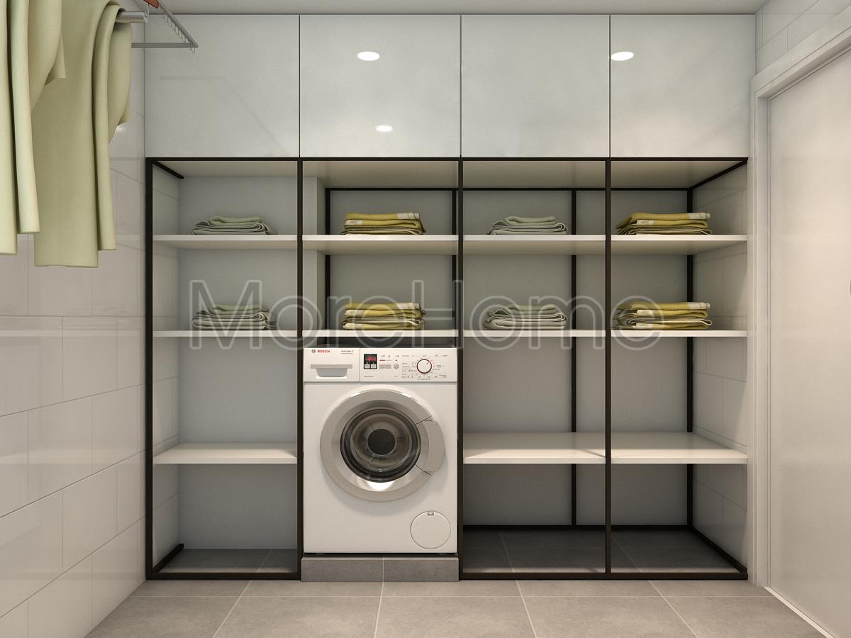 Cuối cùng là không gian phơi và giặt giũ quần áo. Điểm nổi trội thu hút sự chú ý chính là tính công năng. Thiết kế kệ thép linh hoạt mang lại sự tiện nghi cho gia chủ mà lại đảm bảo tính linh hoạt trong lắp đăt và thay thế.